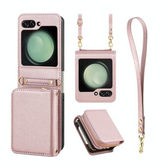 For Samsung Galaxy Z Flip5 Multifunctional Card Bag Phone Case(Rose Gold)
