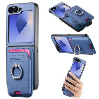 For Samsung Galaxy Z Flip5 5G Twill Fabric Card Bag Ring Magnetic Back Phone Case(Blue)