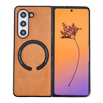 For Samsung Galaxy Z Fold 5 SULADA Top Grain Leather MagSafe Magnetic Holder Phone Case(Brown) (SULADA)