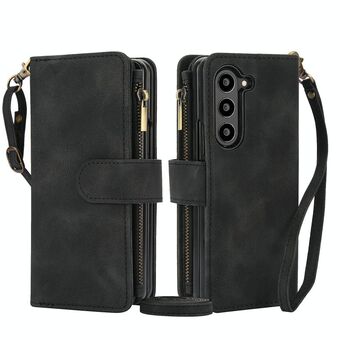 For Samsung Galaxy Z Fold5 5G Dream 9-Card Zipper Wallet RFID Leather Phone Case with Lanyard(Black)