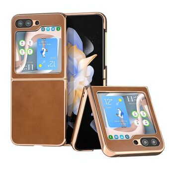 For Samsung Galaxy Z Flip5 5G Lamb Leather Cork PU + PC Brown Phone Case(Black Edge)