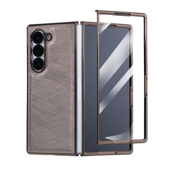 For Samsung Galaxy Z Fold6 5G Bamboo Fiber Texture + Flannel Phone Case with Tempered Film(Titanium Gold)