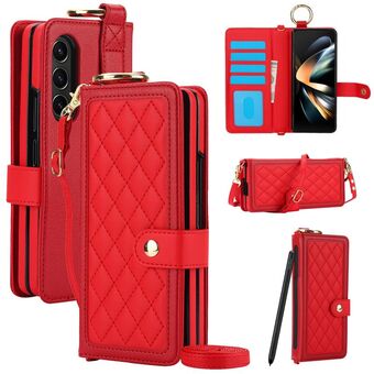 For Samsung Galaxy Z Flip4 Rhombic Texture Card Bag Phone Case with Dual Lanyard(Purple)