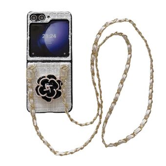 For Samsung Galaxy Z Flip4 Rhombic Texture Card Bag Phone Case with Dual Lanyard(White)