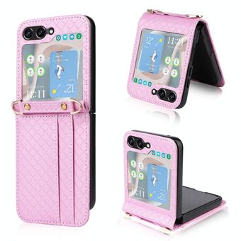 For Samsung Galaxy Z Flip5 Crossbody Diamond Lattice Folding Phone Case(Pink)