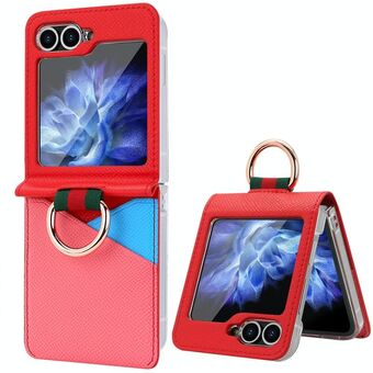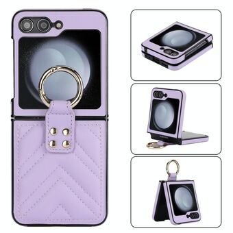 For Samsung Galaxy Z Flip5 V-shaped PU Hybrid TPU Ring Holder Phone Case(Purple)
