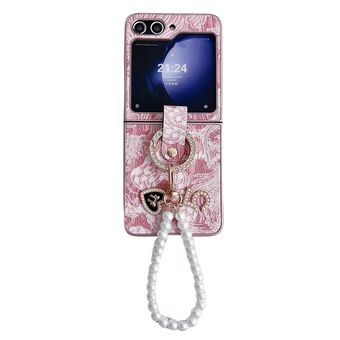 For Samsung Galaxy Z Flip5 Checkered Scarf Bracelet Phone Case(Pink)
