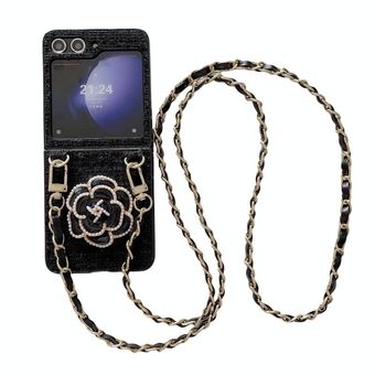 For Samsung Galaxy Z Flip5 Crossbody Diamond Lattice Folding Phone Case(Black)