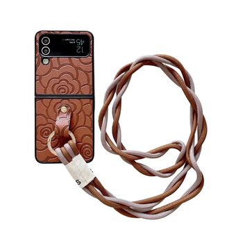 For Samsung Galaxy Z Flip4 Crossbody Color Matching Folding Phone Case(Brown)