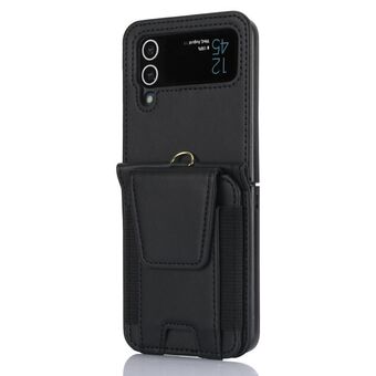 For Samsung Galaxy Z Flip4 Card Slots Folding Phone Case with Long Lanyard(Black)