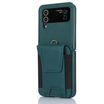 For Samsung Galaxy Z Flip4 Card Slots Folding Phone Case with Long Lanyard(Green)