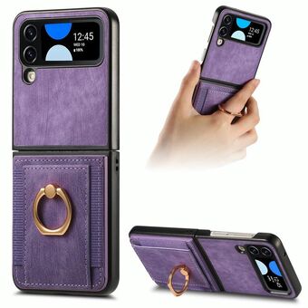 For Samsung Galaxy Z Flip4 Retro Skin-feel Ring Multi-card Wallet Phone Case(Purple)