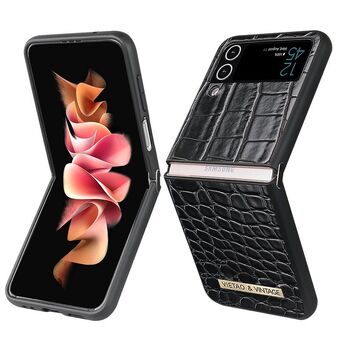 For Samsung Galaxy Z Flip4 VIETAO Crocodile Texture PU Leather Phone Case(Black) (VIETAO)