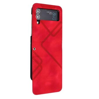 For Samsung Galaxy Z Flip4 Line Pattern Skin Feel Leather Phone Case(Red)