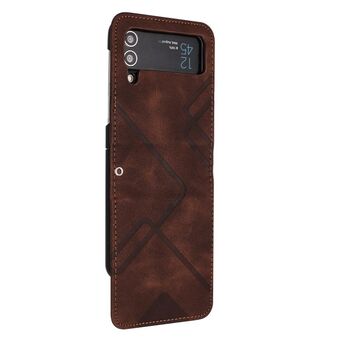 For Samsung Galaxy Z Flip4 Line Pattern Skin Feel Leather Phone Case(Coffee)