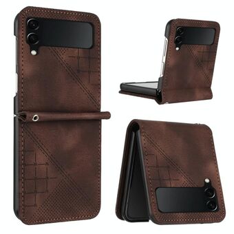 For Samsung Galaxy Z Flip4 YX0080 Grid Butterfly Embossed Pattern Flip Leather Phone Case with Lanyard(Coffee)