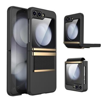 For Samsung Galaxy Z Flip4 5G Hardware Foldable Leather Shockproof Phone Case(Black Gold)