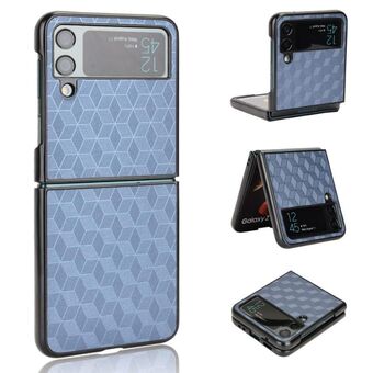 For Samsung Galaxy Z Flip4 Siamese Cubic Grid Texture Card Slot Leather Phone Case(Blue)