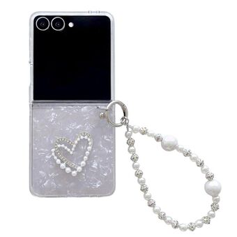 For Samsung Galaxy Z Flip7 5G Pearlescent Shell Texture Heart Pattern Phone Case with Bracelet(White)