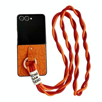 For Samsung Galaxy Z Flip7 5G Woven Texture Phone Case With Colorful Lanyard(Brown)