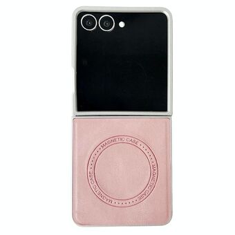 For Samsung Galaxy Z Flip7 5G Skin Feel Leather Texture MagSafe Pearlescent Paint Shockproof Phone Case(Pink)