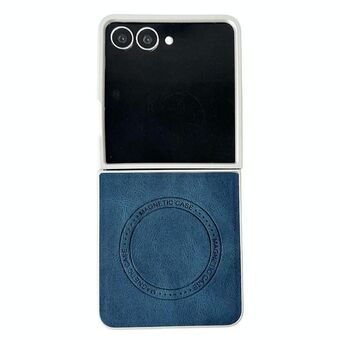 For Samsung Galaxy Z Flip7 5G Skin Feel Leather Texture MagSafe Pearlescent Paint Shockproof Phone Case(Blue)