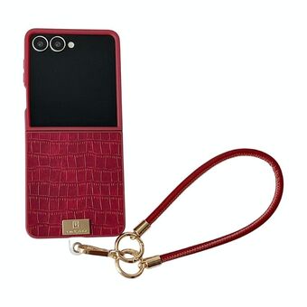 For Samsung Galaxy Z Flip7 5G Crocodile Texture TPU Phone Case With Strap(Red)