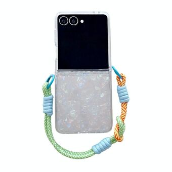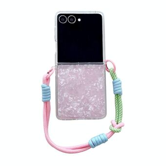 For Samsung Galaxy Z Flip7 5G Three Parts Pearlescent Shell Texture Phone Case with Bracelet(Pink Green)