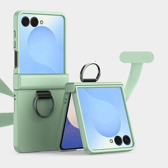 For Samsung Galaxy Z Flip7 5G Three Parts PC Skin Feel Shockproof Phone Case with Ring(Green)
