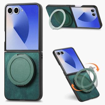 For Samsung Galaxy Z Flip7 5G Retro Leather Rotation Round Holder Phone Case(Green)