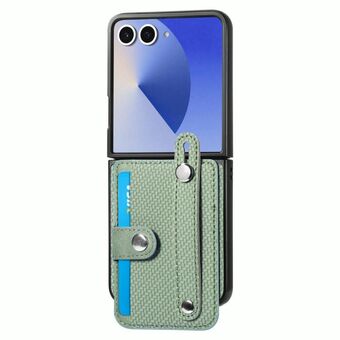 For Samsung Galaxy Z Flip7 5G Wristband Kickstand Card Wallet Back Cover Phone Case(Green)