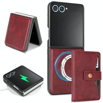 For Samsung Galaxy Z Flip7 Kalebol Magnetic Button Card Bag MagSafe Ring Leather Phone Case(Red) (Kalebol)