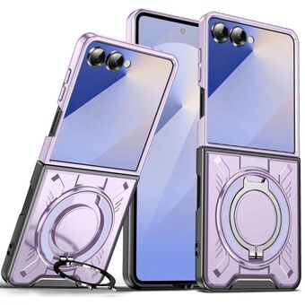For Samsung Galaxy Z Flip7 5G Rotating Ring Holder Magnetic MagSafe Phone Case(Purple)