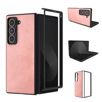 For Samsung Galaxy Z Fold Special Black Edge Two-color Calf Texture PU Phone Case(Pink)