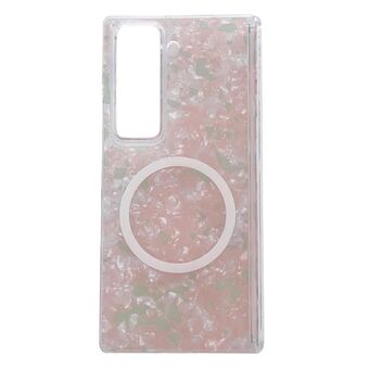For Samsung Galaxy Z Fold Special Magnetic Axis Pearlescent Shell Texture MagSafe Phone Case(Pink Green)