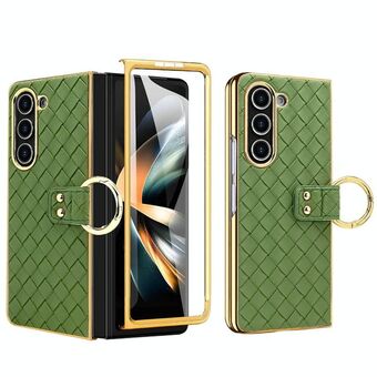 For Samsung Galaxy Z Fold4 VIETAO Woven Leather Metal Ring Phone Case(Green) (VIETAO)