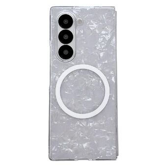 For Samsung Galaxy Z Fold4 Pearlescent Shell Texture MagSafe Phone Case(White)