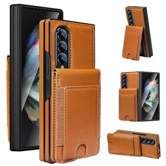 For Samsung Galaxy Z Fold4 5G Skin Feel Calf Texture Card Slots Leather Phone Case(Brown)