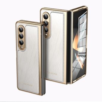 For Samsung Galaxy Z Fold4 Integrated Gold Wire Silver Brocade Plating Phone Case(White)