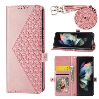 For Samsung Galaxy Z Fold4 Diamond Lattice Wallet Leather Flip Phone Case(Pink)