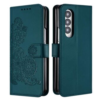 For Samsung Galaxy Z Fold4 5G Datura Flower Embossed Flip Leather Phone Case(Dark Green)