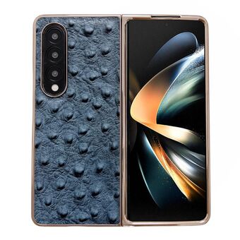 For Samsung Galaxy Z Fold4 5G Genuine Leather Ostrich Texture Nano Plating Phone Case(Blue)