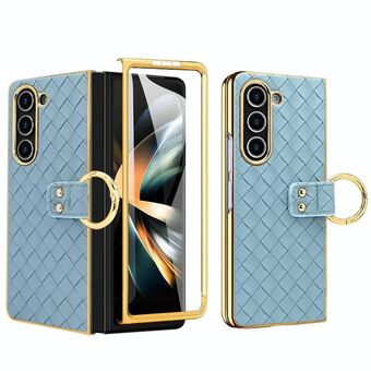 For Samsung Galaxy Z Fold4 5G Genuine Leather Xiaoya Series Nano Plating Phone Case(Blue)