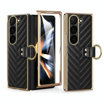 For Samsung Galaxy Z Fold4 5G Integrated Genuine Leather + PC Litchi Texture Phone Case with Holder(Black)