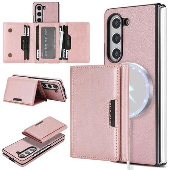 For Samsung Galaxy Z Fold6 Kalebol Strong Magnetic MagSafe Tri-Fold Wallet Side Sticker Leather Phone Case(Pink Gold) (Kalebol)