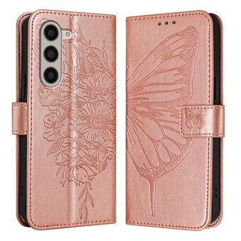 For Samsung Galaxy Z Fold6 Embossed Butterfly Leather Phone Case(Rose Gold)