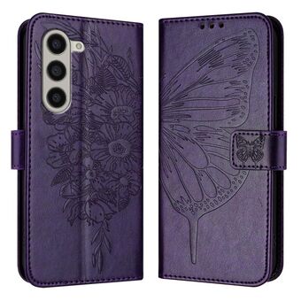 For Samsung Galaxy Z Fold6 Embossed Butterfly Leather Phone Case(Dark Purple)