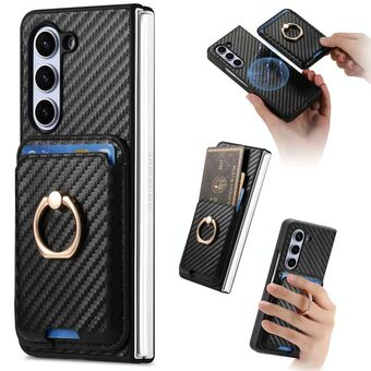For Samsung Galaxy Z Fold6 Carbon Fiber Ring Card Bag Magsafe Phone Case(Black)
