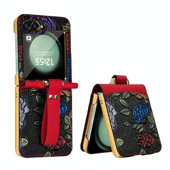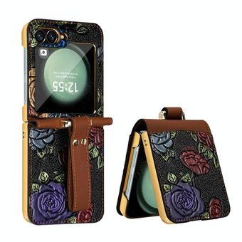 For Samsung Galaxy Z Flip6 VIETAO Integrated Embossed Pattern Full Coverage Phone Case with Wrist Strap(Brown) (VIETAO)