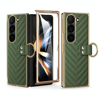 For Samsung Galaxy Z Fold6 VIETAO Woven Leather Metal Ring Phone Case(Gold) (VIETAO)